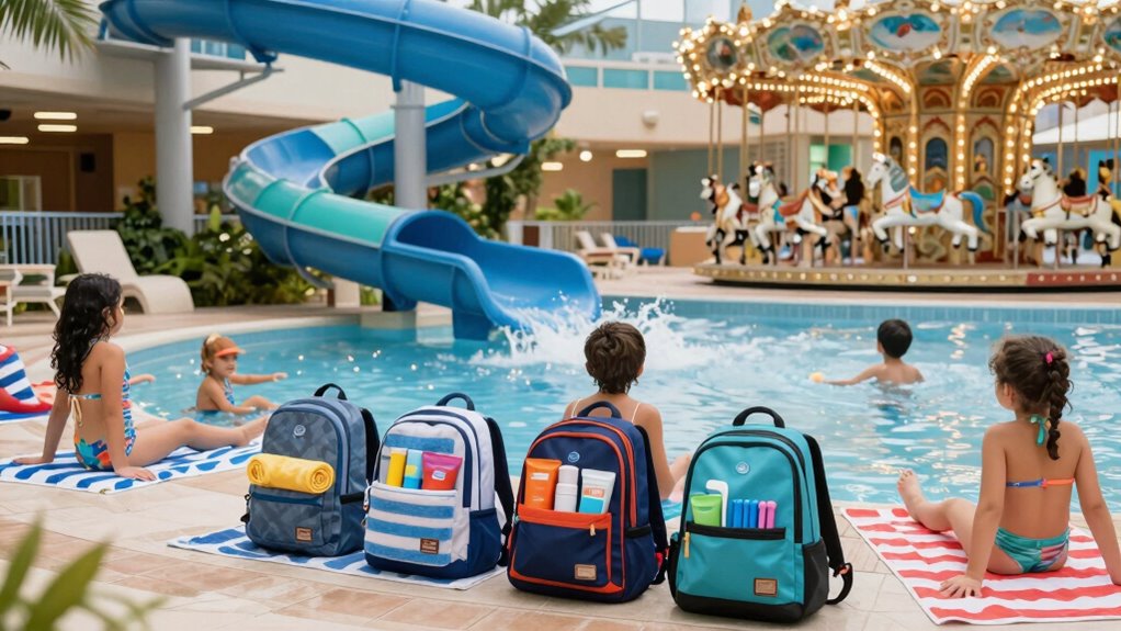 Keep your valuables safe by using waterproof backpacks, which protect your belongings from water damage and are easy to carry around. Don’t rely solely on security; take advantage of secure locker options offered by the water park. Remember, a chain is only as strong as its weakest link, so always double-check that your locker is locked tight before hitting the slides or pools. Stay alert and enjoy your day worry-free!