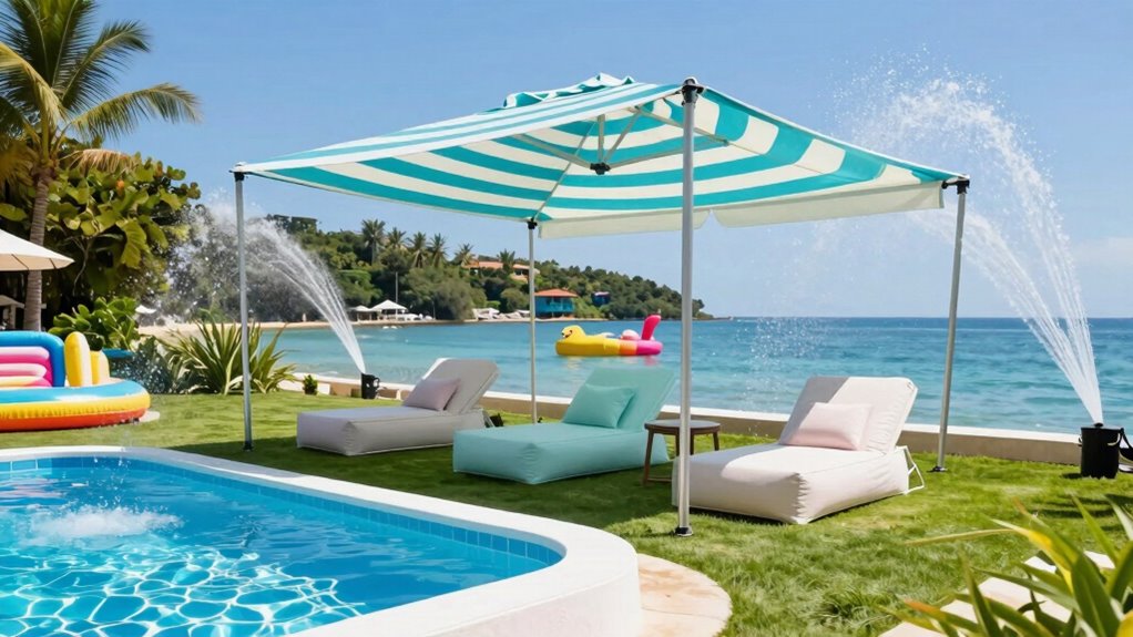 They say “every little bit helps,” and that’s true for eco-friendly beach shelters. You can find shelters made from sustainable fabrics and biodegradable materials, which reduce environmental impact. These options are durable yet gentle on the planet, making your backyard waterpark days more eco-conscious. Choosing eco-friendly materials not only protects nature but also sets a great example for family and friends, turning your fun into a greener adventure.