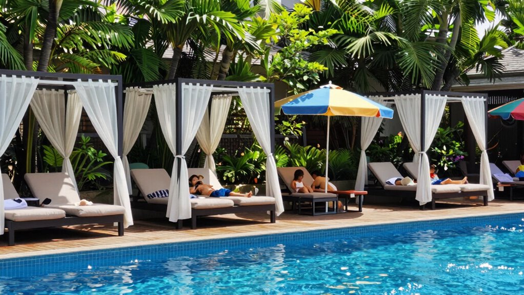 Poolside cabanas are usually seasonal, so they’re not available year-round. During peak season, you can reserve them for relaxing days by the pool, but in the off-season, they might be unavailable or offered at discounted rates. If you plan ahead, you can often take advantage of off-season discounts, making it more affordable to enjoy these cozy rest spaces. Always check with the facility for specific availability and deals.