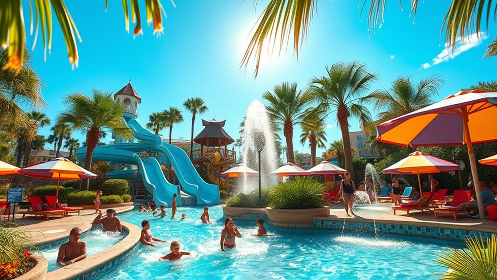 If you’re searching for water parks near Raleigh–Durham, you’ll find several exciting options. Seasonal parks like Wet ’n Wild Emerald Pointe in Greensboro and White Lake Water Park offer big slides, pools, and family-friendly rides from May through September. For year-round fun, indoor aquatic centers and city pools provide swimming, lessons, and water activities any time. Plus, attractions like Fantasy Lake and H2OBX in the Outer Banks add unique water adventures. Learn more about these fantastic spots and how to plan your visit.