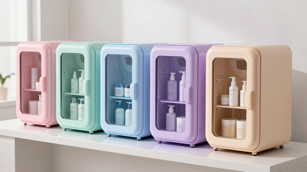 They’re pretty energy-efficient, actually. I’ve noticed most mini skincare fridges use LED lighting and advanced insulation, which helps reduce power consumption. Plus, many models have eco-friendly modes or adjustable thermostats, letting you optimize energy use. So, if you’re conscious about electricity, these fridges won’t hike up your energy bills. I find them a smart, sustainable choice for keeping my skincare products cool without wasting energy.