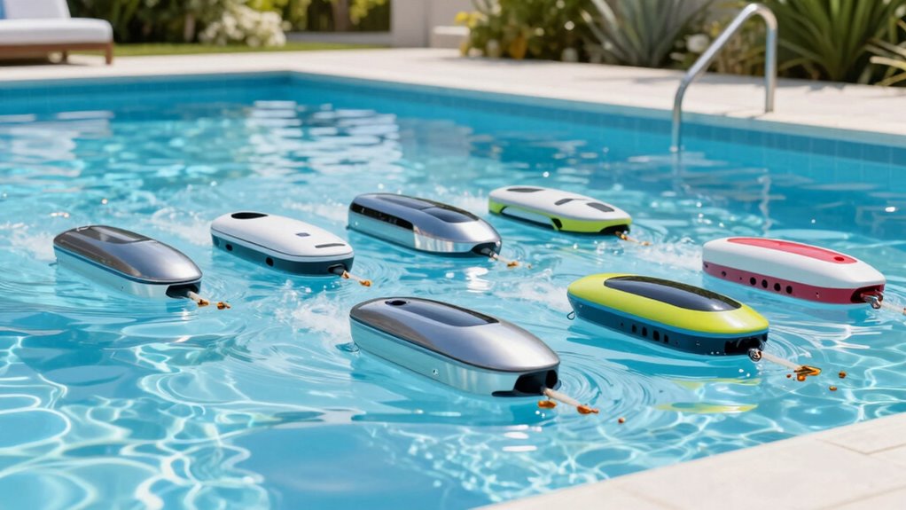 If you’re looking for the 8 best automatic pool skimmer robots for 2026, I’ve got you covered. These models feature advanced AI navigation, solar power, app control, and high-capacity debris baskets, ensuring efficient and thorough cleaning. Whether you want electric, solar, or hybrid options, there’s something for every pool size and type. Keep going, and you’ll discover more details to help you choose the perfect robot for your pool needs.