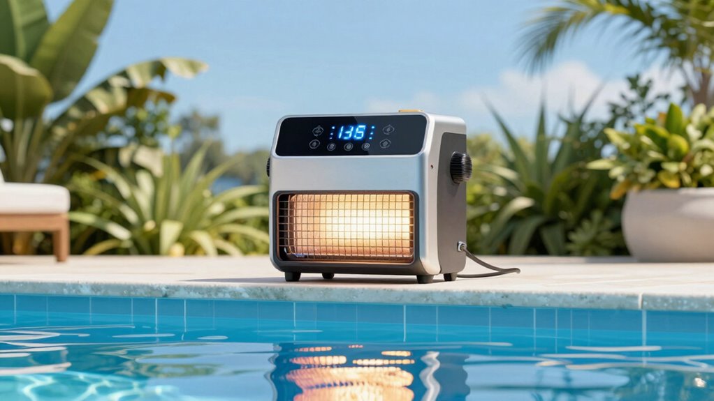 Ever wondered how you can effortlessly maintain the perfect water temperature in your pool without constantly monitoring it? Modern electric pool heaters with digital touchscreen controls make it simple to set and adjust temperatures precisely. WiFi-enabled models take convenience further, allowing remote operation and monitoring via mobile apps—so you can tweak settings from anywhere. Many heaters come with automatic safety features like auto-shutdown, fuse protection, and anti-dry burn systems, ensuring safe, worry-free operation. Programmable timers let you schedule heating cycles, maintaining consistent warmth without manual intervention. Some models also incorporate auto-defrost functions and multi-sensor monitoring, optimizing performance and keeping your pool at the ideal temperature automatically. These control and automation features make extended swimming seasons more convenient and energy-efficient.
