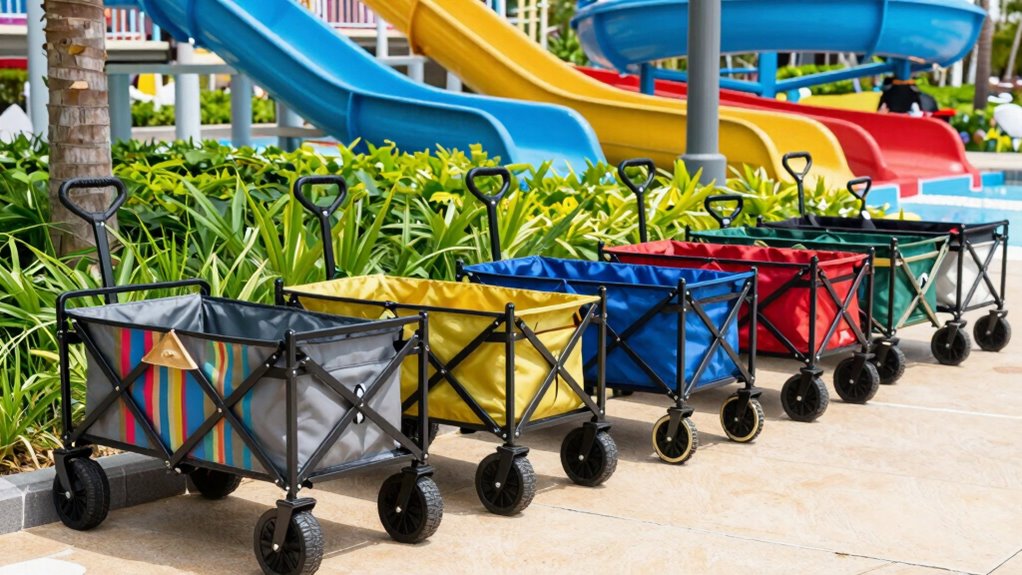 I find these carts really easy to assemble and fold. Most come with straightforward instructions, and I can set them up or collapse them in just a few minutes. The lightweight design makes portability simple, too. I appreciate how they’re built for quick travel, so I don’t have to wrestle with complicated parts or heavy materials. Overall, they make packing up and heading to the water park or resort hassle-free.