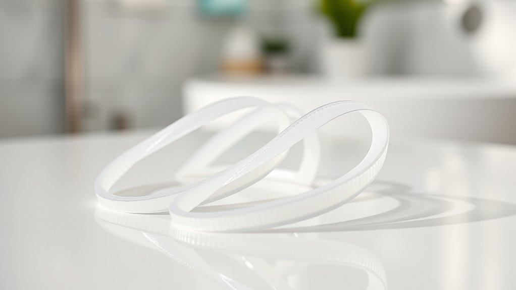 Because sensitivity relief technology is essential for comfortable whitening, I focus on products that incorporate ingredients like potassium nitrate or fluoride to soothe nerve endings. These ingredients help desensitize teeth, reducing discomfort during and after treatment. I also look for strips with a lower concentration of bleaching agents to minimize enamel irritation, which is vital for sensitive teeth. Many effective strips feature a gel or coating that creates a protective barrier over the enamel, further reducing sensitivity. Desensitizing agents within the strips help prevent post-treatment pain, making daily use easier and more comfortable. Advanced technology allows for longer or more frequent treatments without discomfort, boosting whitening results while keeping sensitivity at bay. This combination of ingredients and design makes a significant difference in achieving a bright smile without the pain.