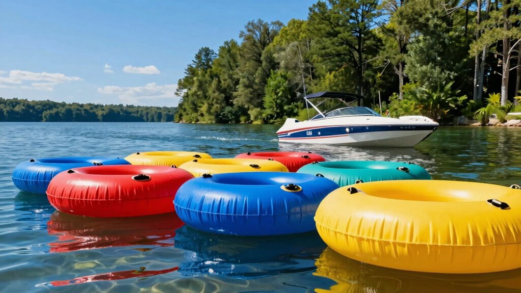 Looking for the best towable tubes for your lake vacation in 2026? I recommend options that combine safety, durability, and fun. From secure designs like the ZOOMBROS and Vevor tubes to versatile models like the Wow Sports Thriller and Razor 2 Rider, there’s something for everyone. Larger models like the Wow Sports Bubba support multiple riders, while models like the Intex River Rat are perfect for groups. Keep watching to discover more about these top picks and find your perfect tube.