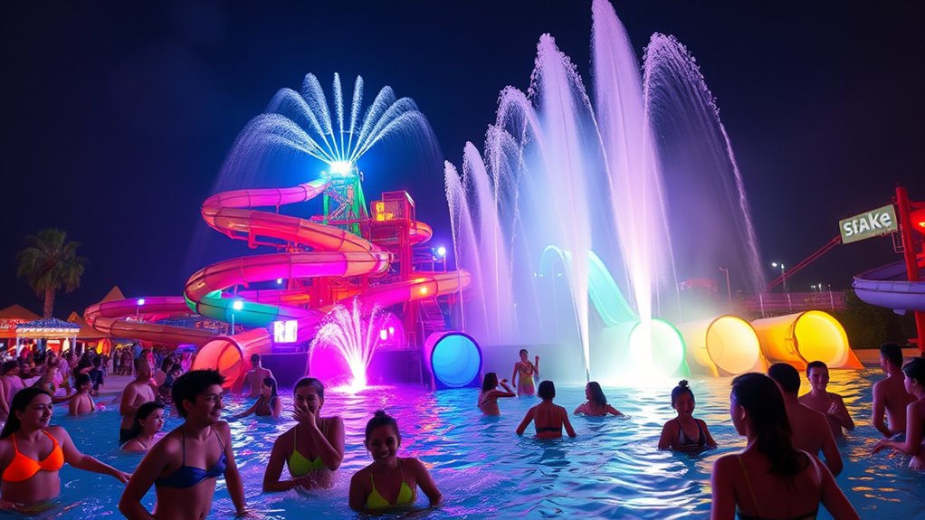 As the night unfolds, after-dark water park events become your gateway to a world where thrill and mystery intertwine. Embrace the shadows, where every splash and laughter echoes like whispers of adventure waiting to be uncovered. These nights symbolize more than just fun—they’re your chance to plunge into unforgettable memories beneath the stars. So, step beyond the daylight and let the darkness reveal your most exhilarating water-filled dreams.
