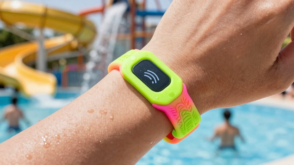 Wristbands typically don’t expire right away; they’re designed for the duration of your visit, making them more like a “use it or lose it” deal. Wristband longevity depends on the material and the park’s expiration policies, which usually specify how long they’re valid. Check with the water park beforehand to clarify any specific expiration details, so you’re not caught off guard.